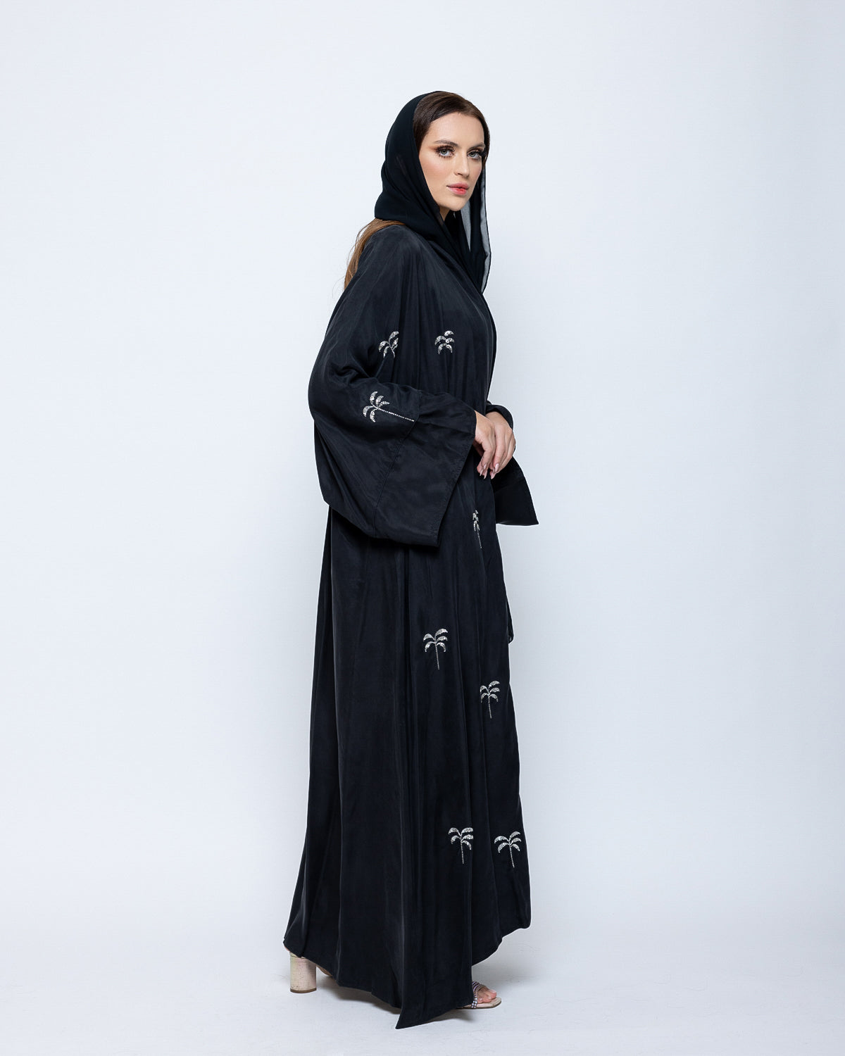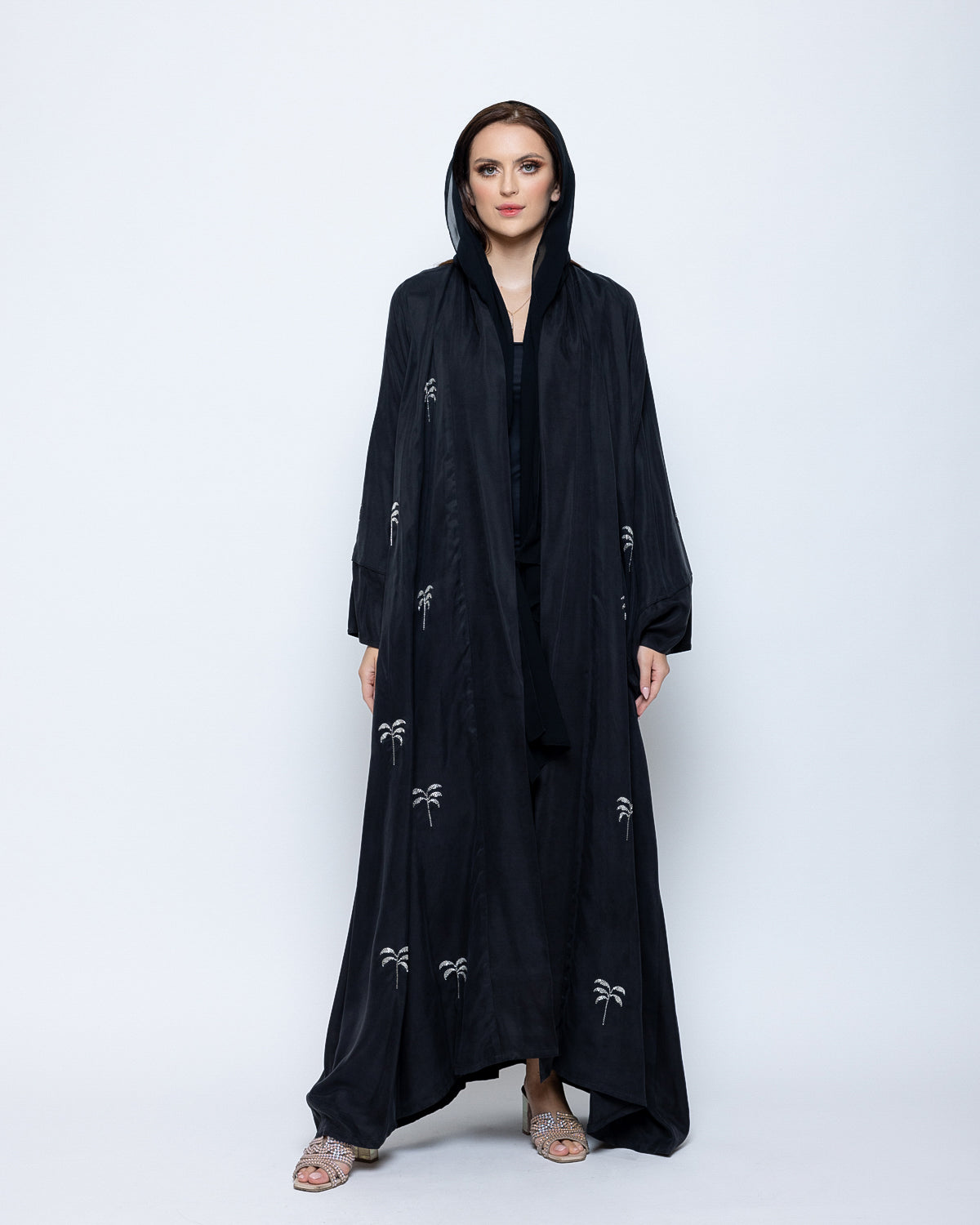 ارتقِ بأسلوبك مع عباية النخيل المصنوعة يدويًا بعناية بالغة بغرز وتشطيبات عالية الجودة لإطلالة فاخرة. هذه العباءة ذات المقاس المريح مصنوعة من الحرير الناعم المغسول، مما يوفر الراحة والأناقة.