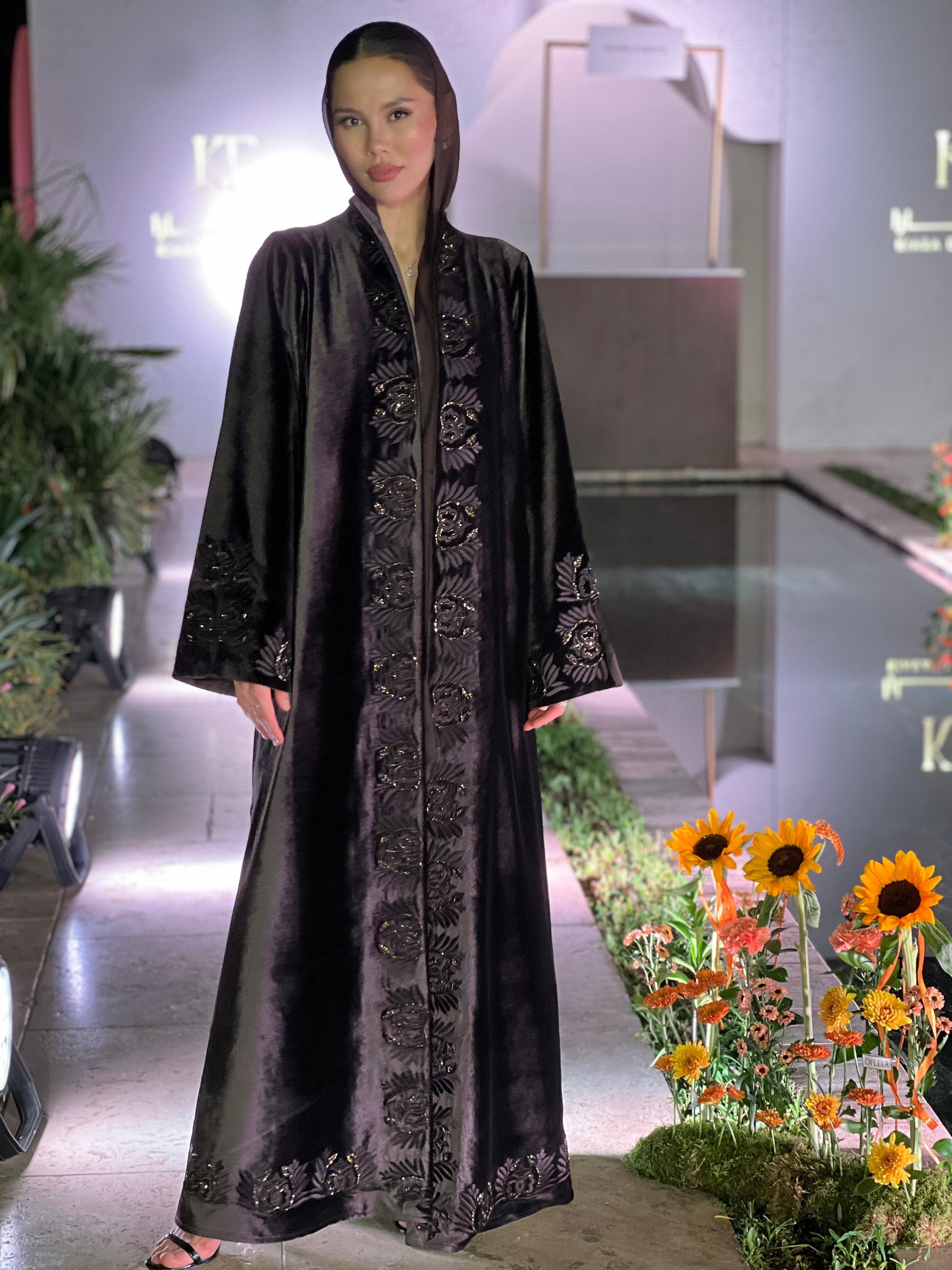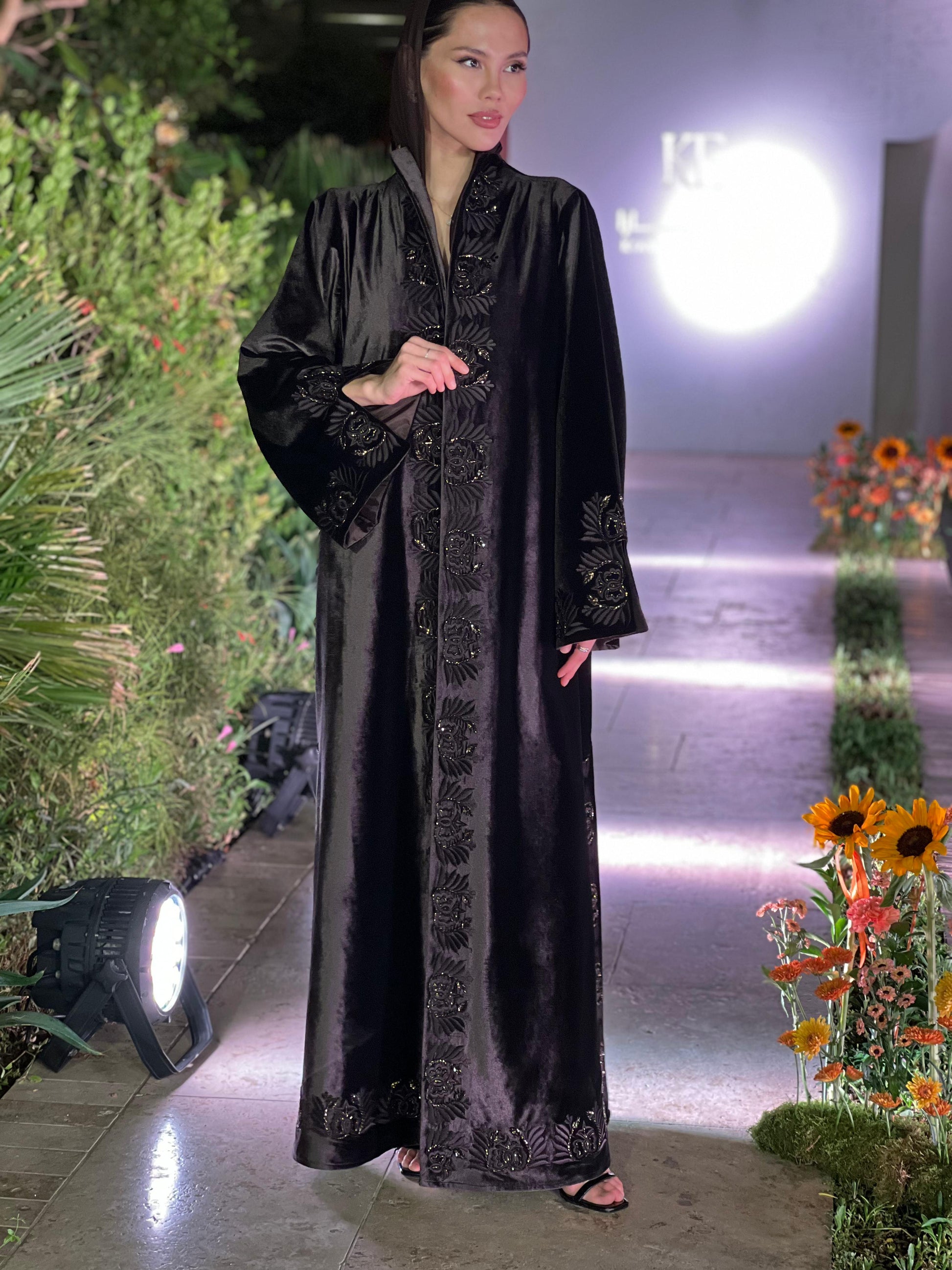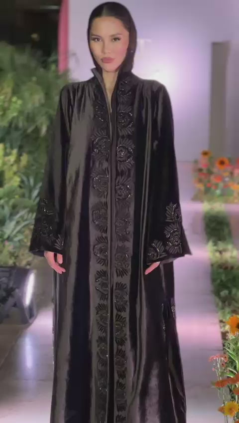 Crafted from premium Korean Velvet, this masterpiece exudes understated elegance with its flawless drape and luxurious texture. The hand-embedded beadwork subtly catches the light, creating a delicate shimmer that elevates your presence with every movement.